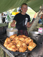 Eg steike pannekaker på bålet om kvelden.Legg merke te dei herlige solbrillene;) Greit å ha når røyken svir som bare rakkar i auene!